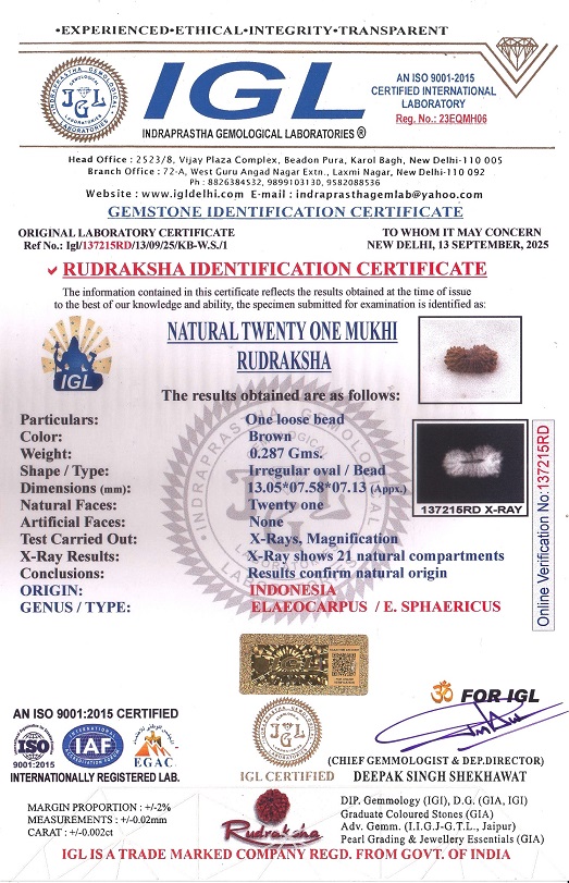 21 Mukhi Rudraksha is said to bring peace, harmony, and prosperity to the